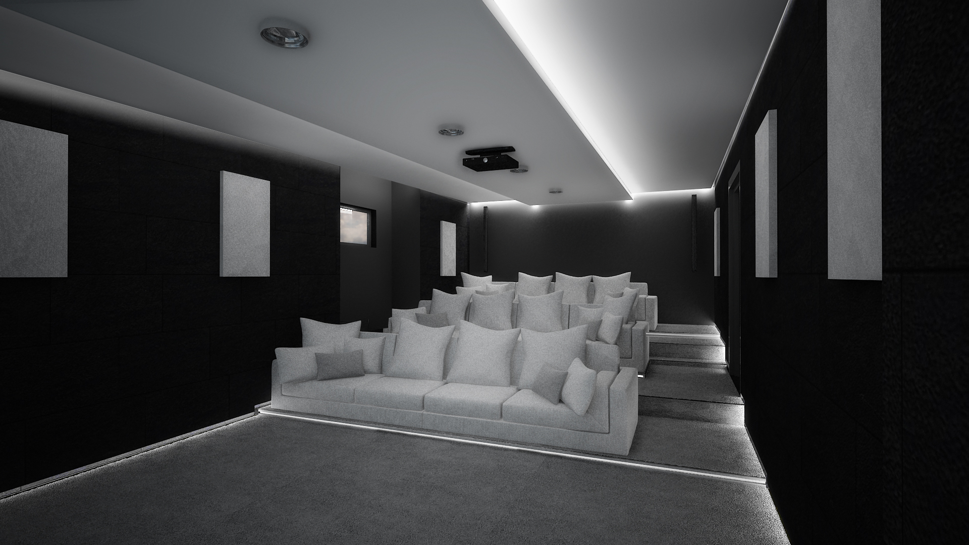 El objetivo de este proyecto fue desarrollar un espacio moderno pero al mismo tiempo acogedor. Se pensó como un cine con las comodidades de una sala de televisión.