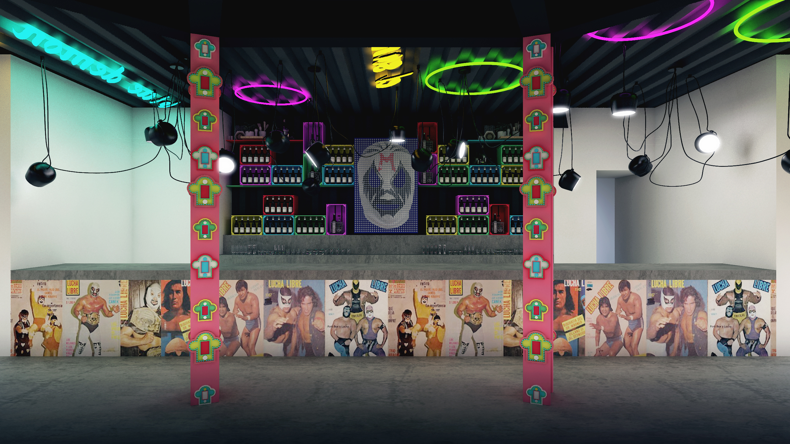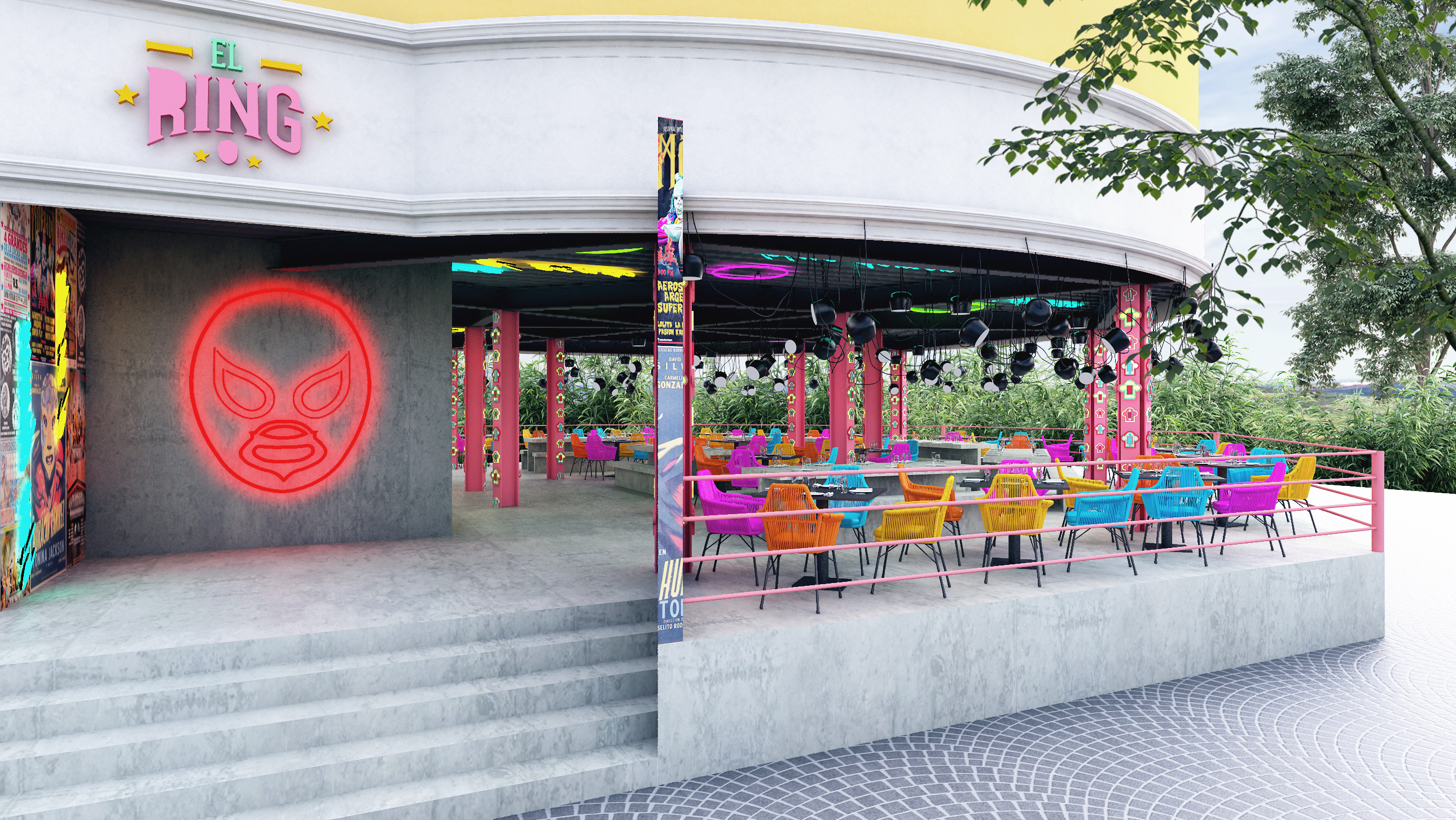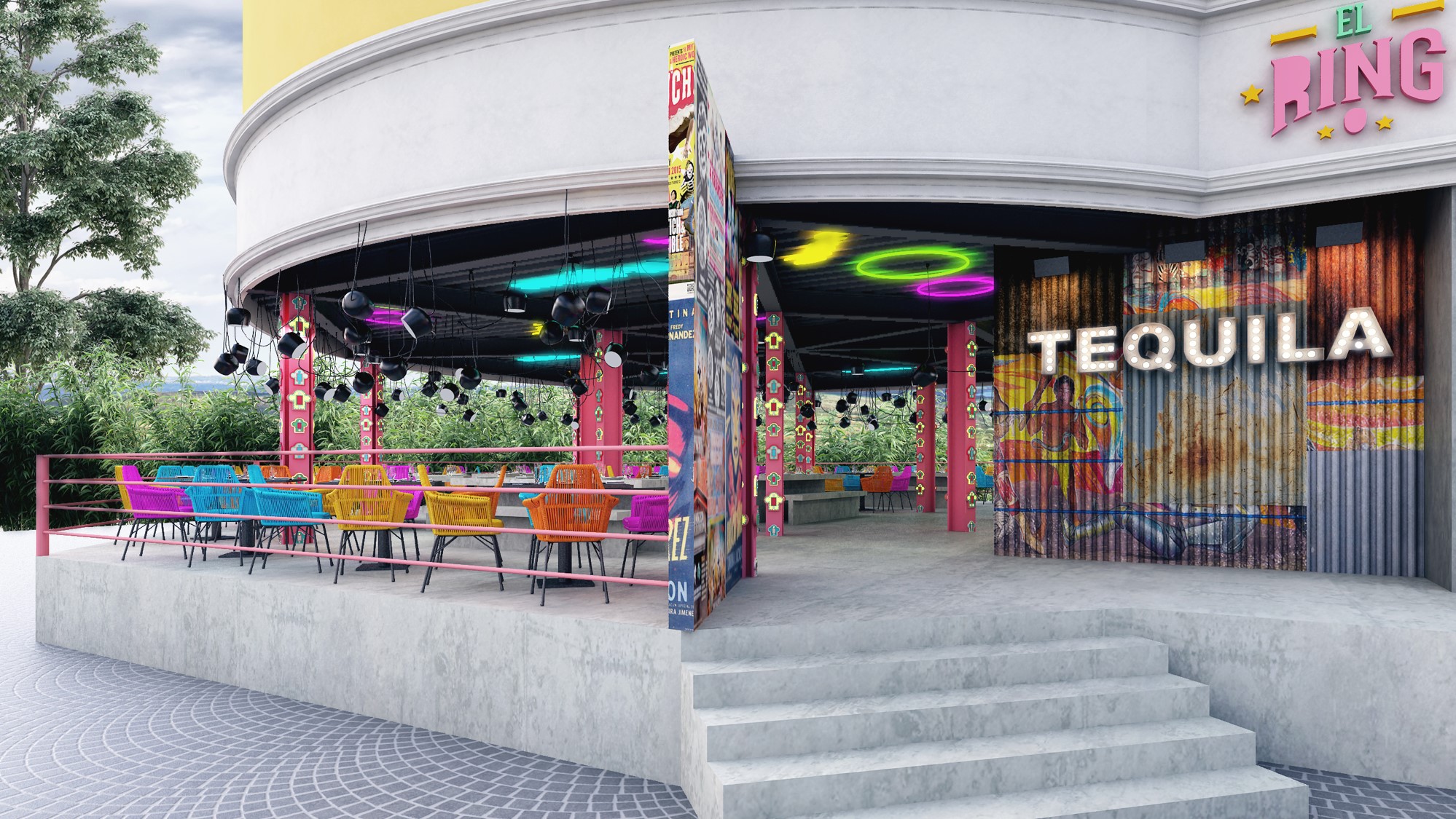 Se busco personalizar el restaurante con el tema de la lucha libre ya que el espacio simula ser un Ring.