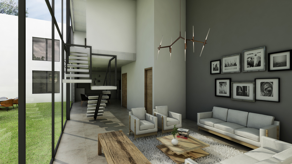 La casa esta diseñada con un estilo moderno pero a la vez se usan materiales y acabados muy sencillos para darle esta imagen limpia.